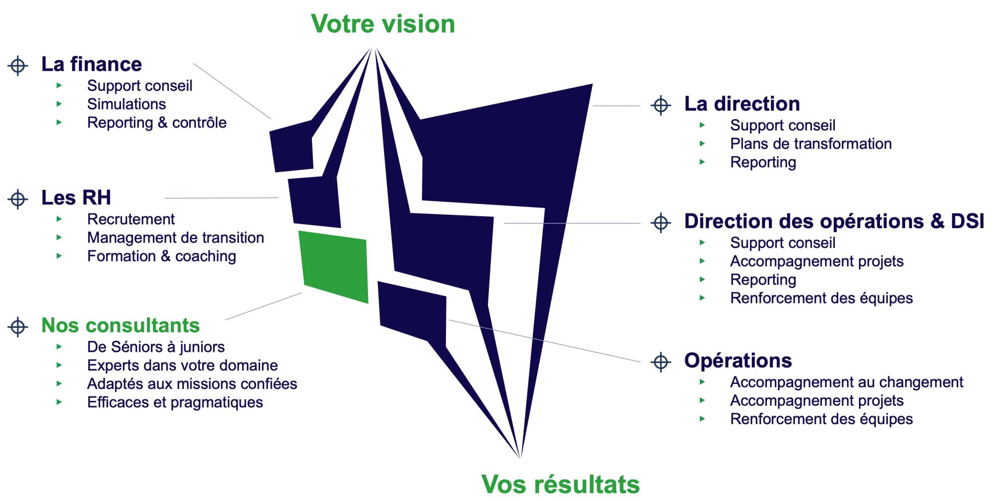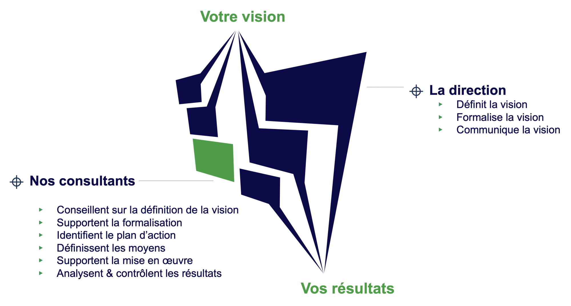 Nous avons un rôle de conseil et accélération pour la mise en œuvre de votre vision d’entreprise.